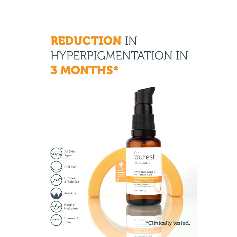 The Purest Solutions Brightening & Lightening Vitamin C Serum (10% Ascorbic Acid & 0.5% Ferulic Acid) - Revitalize & Renew Dull Skin - Anti-Aging Care & Anti-Stress Care - Vegan (1 fl. oz)