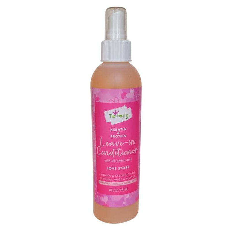The Purity Keratin & Protein Leave-in Conditioner Love Story softens and detangles for frizz free hair. Stops hair breakage , Seals hair cuticle, Smoothes the cuticle, Conditions and hydrates hair instantly.