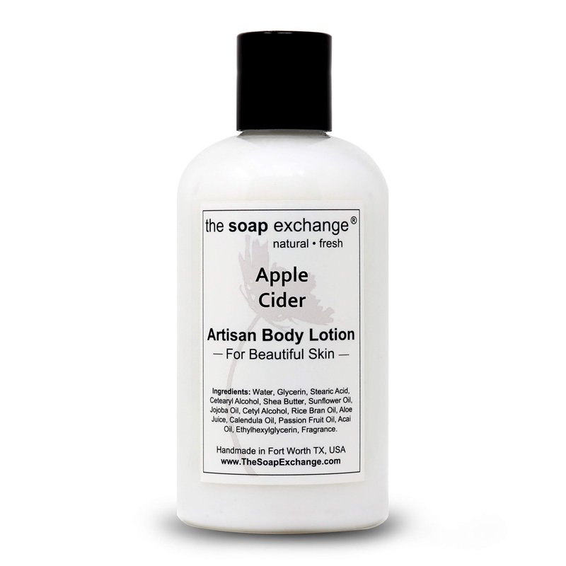 The Soap Exchange Body Lotion - Apple Cider Scent - Hand Crafted 8 fl oz / 240 ml Natural Artisan Skin Care for Hand, Face, & Body. Moisturize, Hydrate, & Protect. Made in the USA.