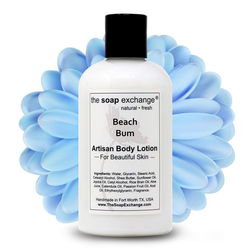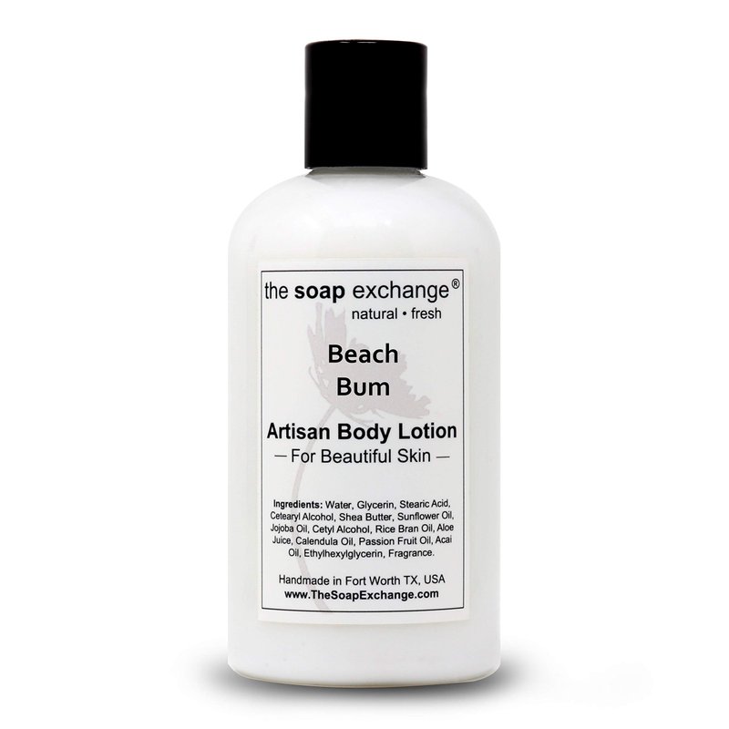 The Soap Exchange Body Lotion - Beach Bum Scent - Hand Crafted 8 fl oz / 240 ml Natural Artisan Skin Care for Hand, Face, & Body, Moisturize, Hydrate, & Protect. Made in the USA.
