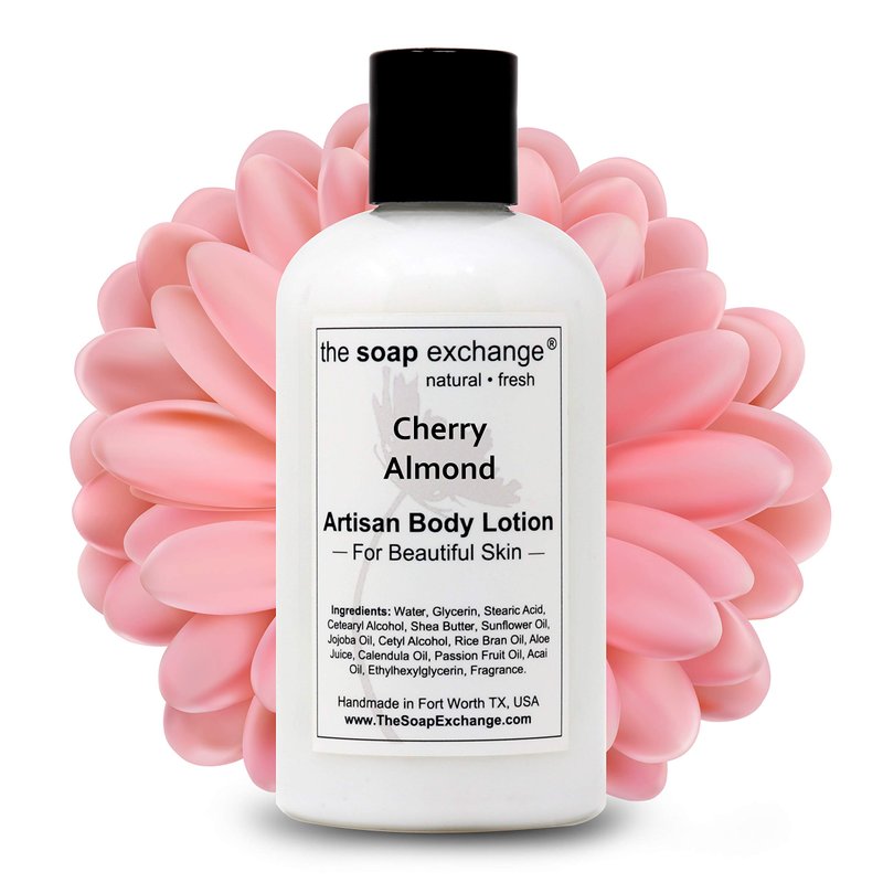The Soap Exchange Body Lotion - Cherry Almond Scent - Hand Crafted 8 fl oz / 240 ml Natural Artisan Skin Care for Hand, Face, & Body, Moisturize, Hydrate, & Protect. Made in the USA.