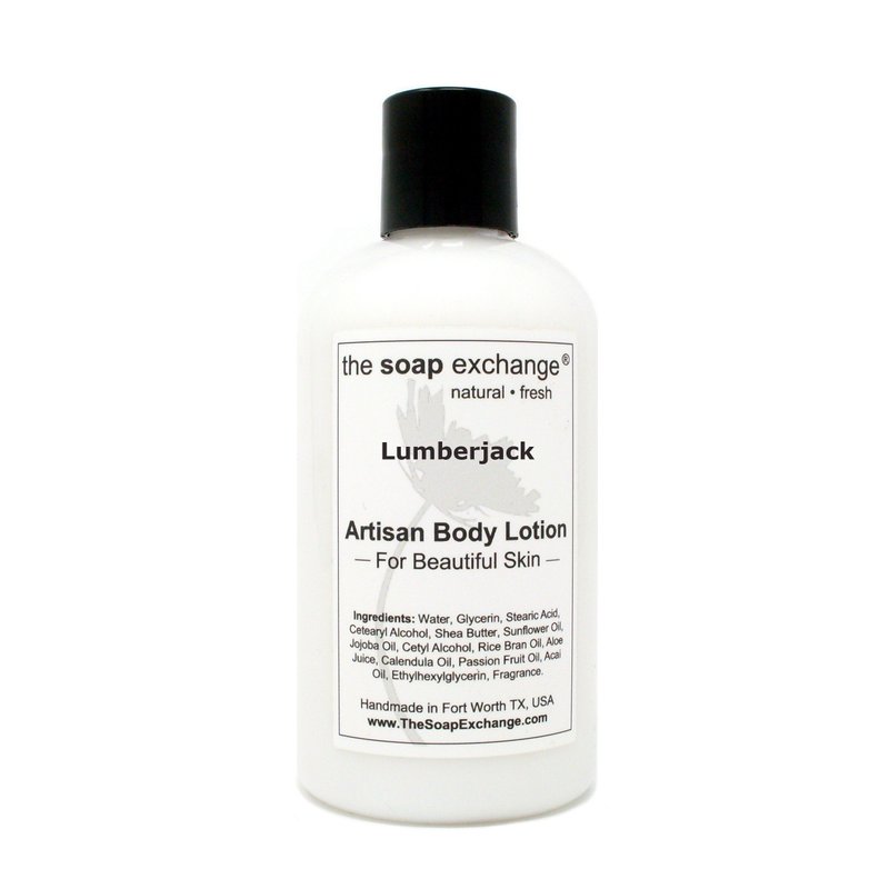 The Soap Exchange Body Lotion - Lumberjack Scent - Hand Crafted 8 fl oz / 240 ml Natural Artisan Skin Care for Hand, Face, & Body, Moisturize, Hydrate, & Protect. Made in the USA.