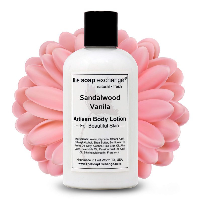 The Soap Exchange Body Lotion - Sandalwood Vanilla Scent - Hand Crafted 8 fl oz / 240 ml Natural Artisan Skin Care for Hand, Face, & Body, Moisturize, Hydrate, & Protect. Made in the USA.