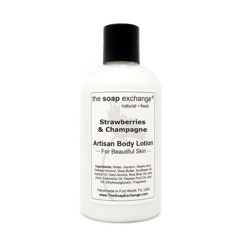 The Soap Exchange Body Lotion - Strawberries & Champagne Scent - Hand Crafted 8 fl oz / 240 ml Natural Artisan Skin Care for Hand, Face, & Body, Moisturize, Hydrate, & Protect. Made in the USA.