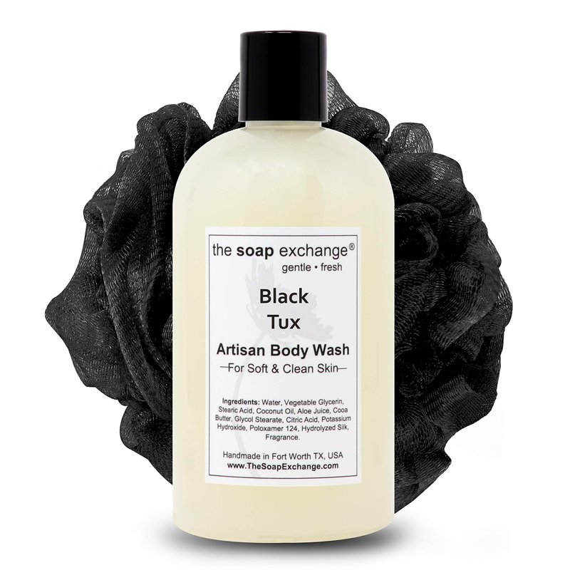 The Soap Exchange Body Wash - Black Tux Scent - Hand Crafted 12 fl oz / 354 ml Natural Artisan Liquid Soap for Hand, Face & Body, Shower Gel, Cleanse, Moisturize, & Protect. Made in the USA.