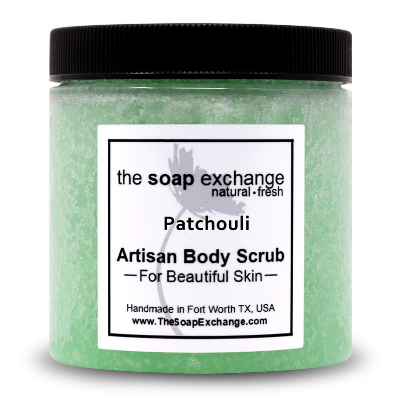 The Soap Exchange Sea Salt Body Scrub - Patchouli Scent - Hand Crafted 8 fl oz / 240 ml Natural Artisan Skin Care, Shea Butter, Exfoliate, Moisturize, & Protect. Made in the USA.