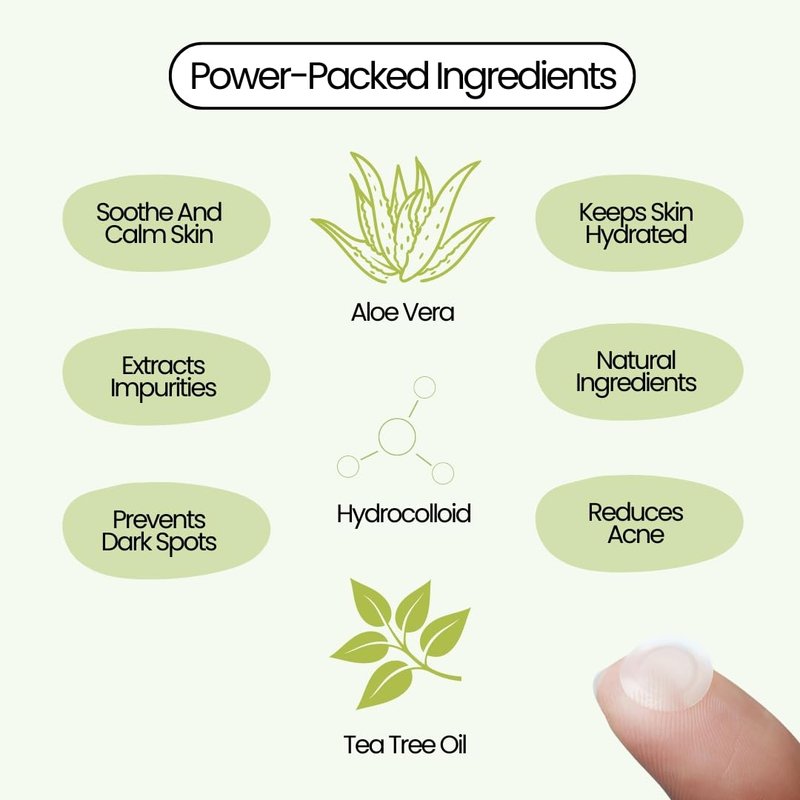 - POWER FORMULA – Unlike other acne patches on the market, our acne stickers use a special blend of aloe and tea tree oils to quickly hydrate, soothe and calm the skin.