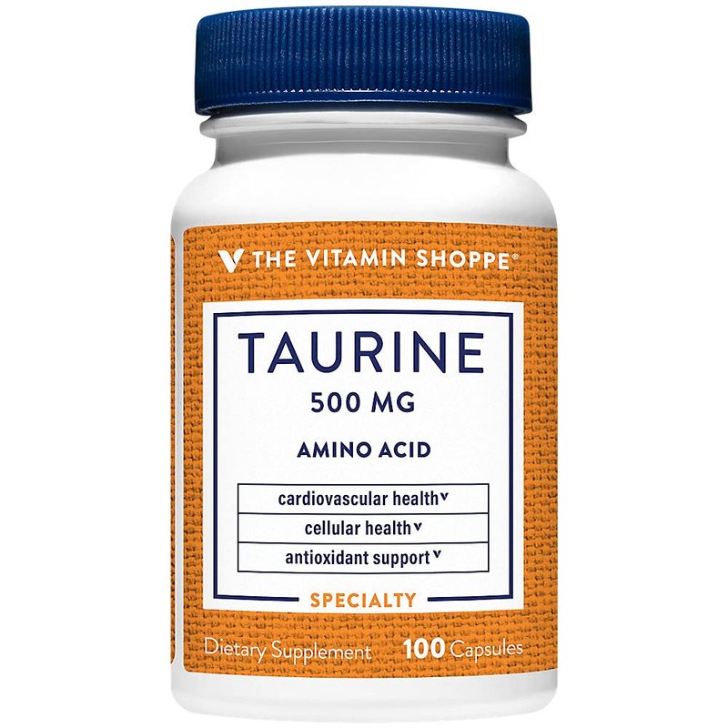 The Vitamin Shoppe Taurine 500MG, A Free Form Amino Acid, Antioxidant That Supports Cellular and Cardiovascular Health with Vitamin B6, Brain and Memory Support (100 Capsules)