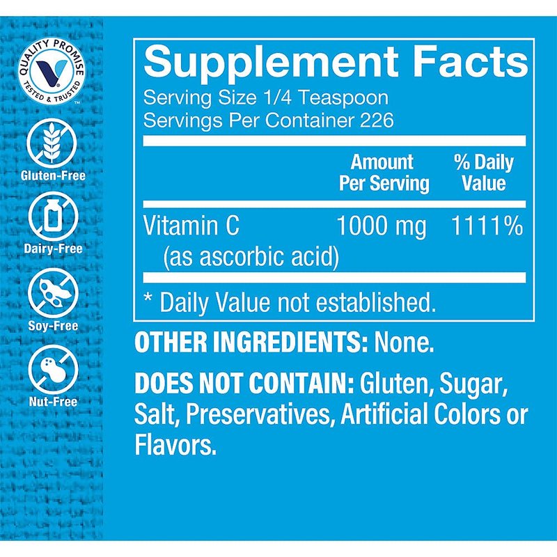 Promotes natural immunity and cardiovascular healthOffers antioxidant supportSuitable for everyday wellness seekersContains 1,000mg of vitamin C per serving (that exceeds your daily requirement!)Free of gluten, dairy, soy, nuts, salt, sugar, preservatives, and artificial colors or flavors The Vitamin Shoppe brand Vitamin C powder is your seamless solution to priming your body with free radical-fighting antioxidants and essential immune and cardiovascular health support. Simply add 1/4 teaspoon of powder into your favorite beverage, mix, and enjoy! Frequently Asked Questions When should I take The Vitamin Shoppe brand Vitamin C Powder?This powder is best absorbed after a meal.