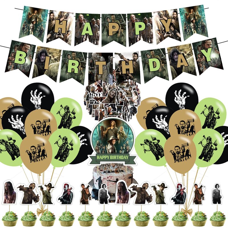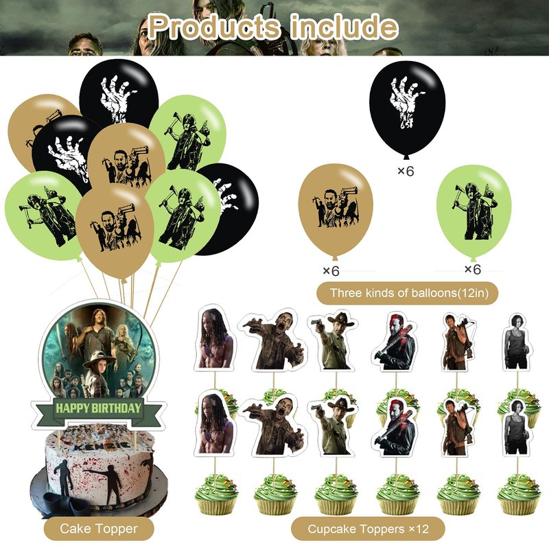 - PACKAGE INCLUDING: Look No Further! 5-IN-1. Unique The walking dead Cake Topper,18 Pcs walking dead Latex Balloons, 50 Pcs The walking dead Stickers,Our Complete Set of walking dead Theme Birthday Party Supplies Will Add Amazing to You, Your Family And Friends
