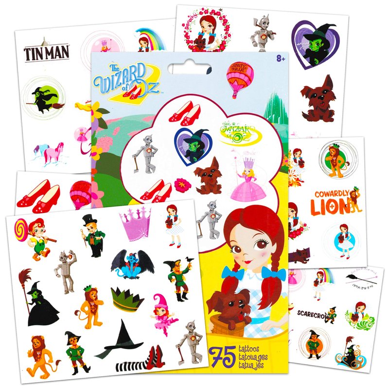 - Includes 75 Wizard of Oz stickers temporary tattoos -- 5 tattoo sheets. Wizard of Oz temporary tattoos are fun, fast to apply, easy to remove. FD&C Approved Ingredients. The perfect Wizard of Oz party activity.