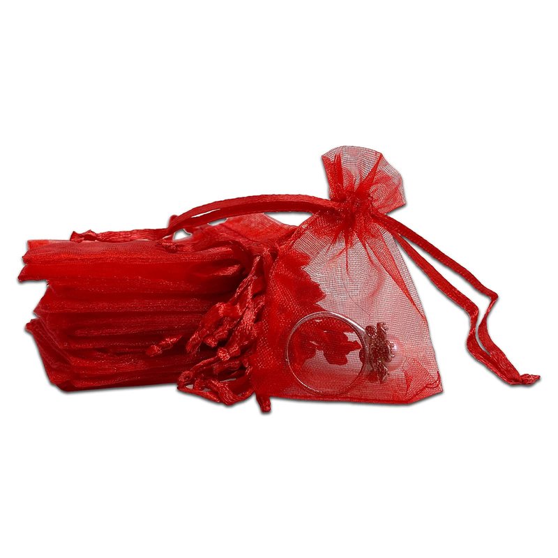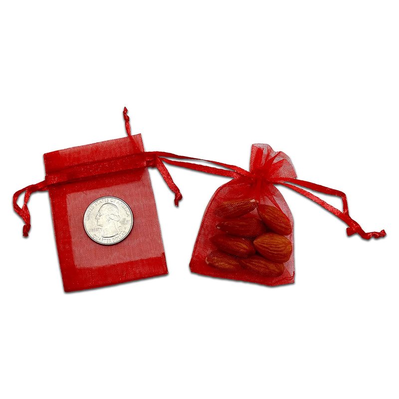TheDisplayGuys 100-Pack XS 2" x 2 3/4" Red Sheer Organza Gift Bags with Drawstring, Goodie Bags for Jewelry, Candy Bags, Treat Bags, Wedding Favors Small Mesh Bags