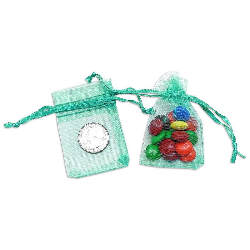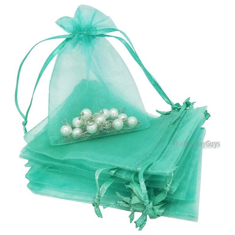 TheDisplayGuys 48-Pack 2" x 2-3/4" Teal Sheer Organza Gift Bags with Drawstring, Goodie Bags for Jewelry, Candy Bags, Treat Bags, Wedding Favors Small Mesh Bags
