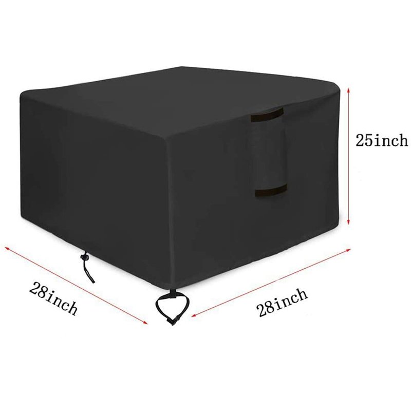 - Universal Size Square Fire Pit Table Cover--- Cover size: 29.5 in(L) x 29.5 in(W) x 25 in(H), compatible with TACKLIFE Propane Fire Pit Table / BALI OUTDOORS Firepit / LEGACY HEATING 28-Inch Square Gas Fire Pit Table / Diophros Propane Gas Fire Pit Table.