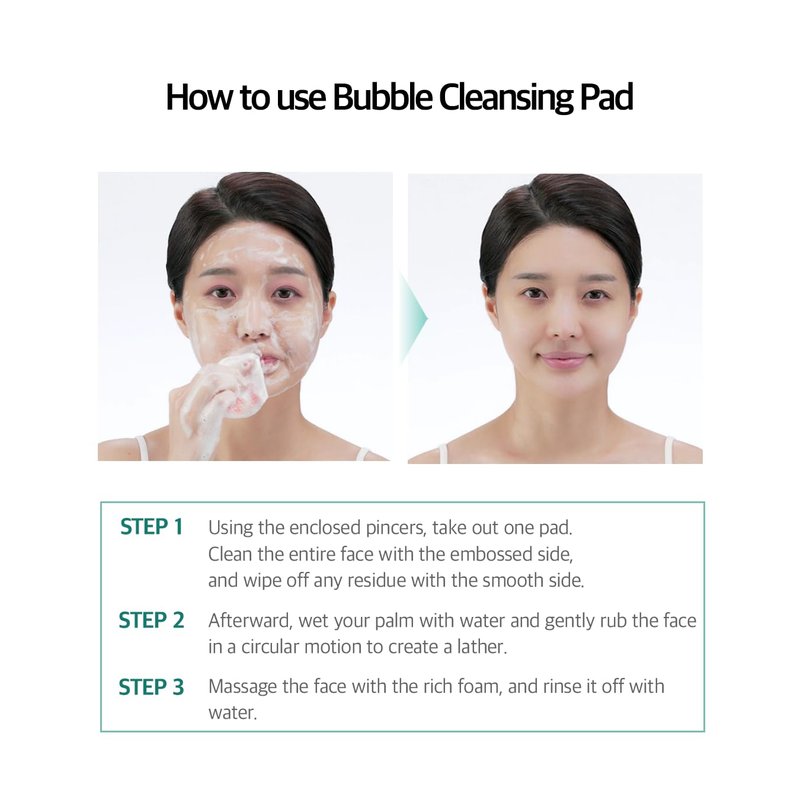 - HOW TO USE: Using the enclosed tongs, take out one pad. Clean the entire face with the embossed side, and wipe off any residue with the smooth side. Afterward, wet your palm with water and gently rub the face in a circular motion to create a lather. Massage the face with the rich foam, and rinse it off with water.