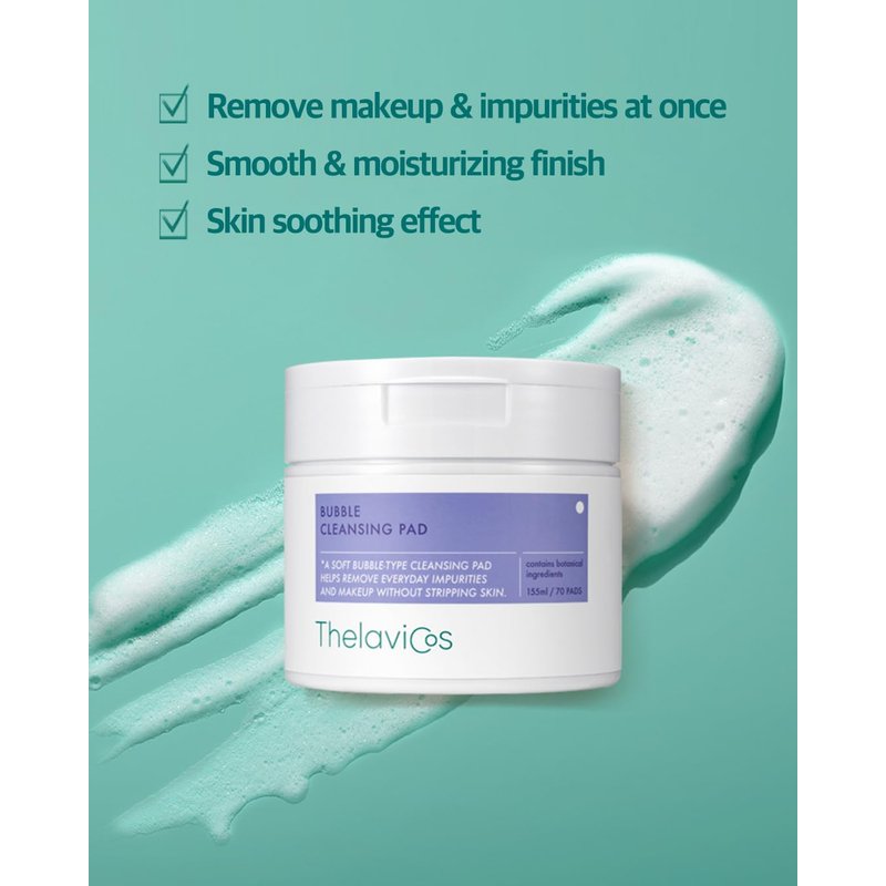 ThelaviCos Bubble Cleansing Pad | Easy makeup remover, facial cleansing pad, gentle & refreshing cleansing without feeling stripped, travel friendly | Korean Skincare for sensitive skin (70 Pads)