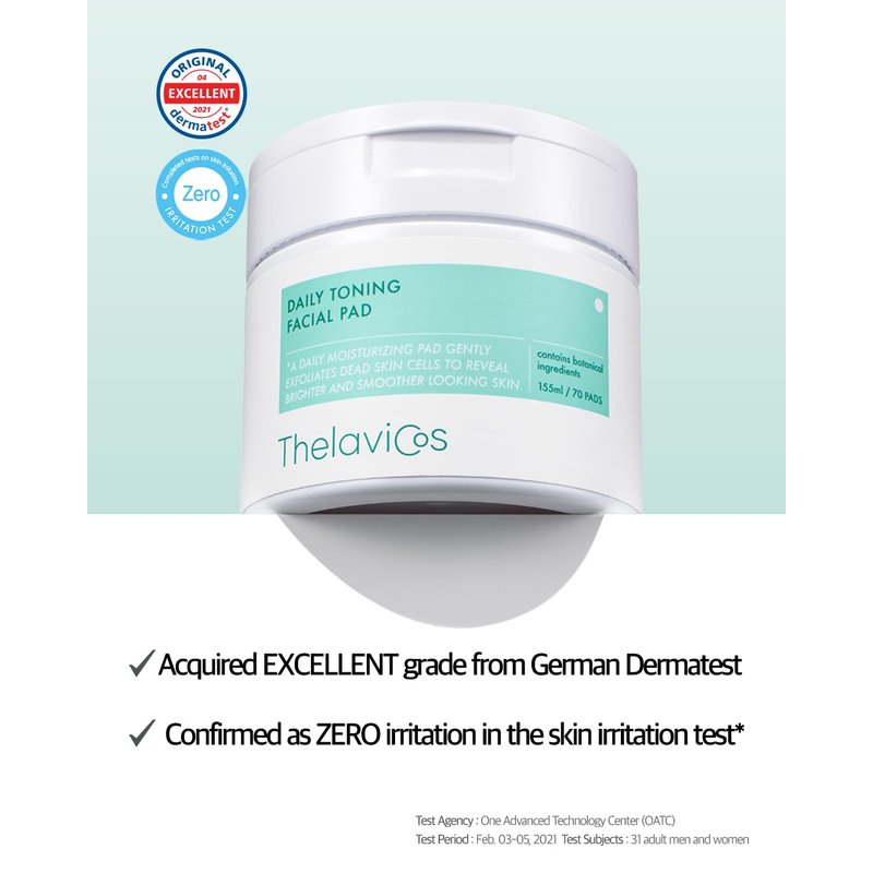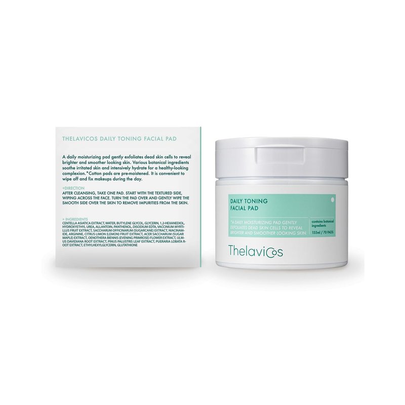 ThelaviCos Daily Toning Facial Pad | Soothing toner pad with Cica for mild exfoliation and sebum control, fresh & light texture, no fragrances | Korean Skincare for sensitive skin (70 Pads)