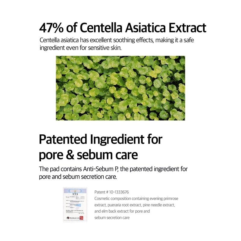 - PADS FOR GENTLE EXFOLIATION: The toner pad, saturated with 47% Centella Asiatica extract and Panthenol, offers gentle exfoliation with soothing effects