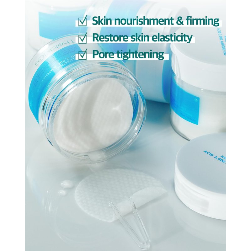ThelaviCos Hyaluronic Acid 3,000 Ampoule Pad | Intense moisturizing Hydrating Toner pad mask, Skin Firming Elasticity & Pore Tightening Treatment | Korean Skincare for Sensitive Skin (70 Pads)