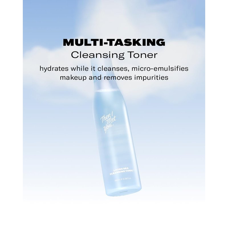 Then I Met You Living Sea Cleansing Tonic, Face Toner & Makeup Remover with Deep Sea Water, Papaya Enzymes & Licorice Root, Vegan & Clean Skincare, 6.08 oz
