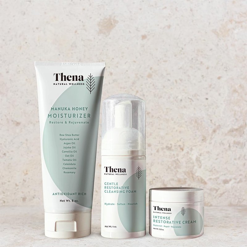 THENA RESTORE Trio Routine, Face Foam Facial Cream Body Moisturizer, Gently Restores Skin Gently, Natural & Organic Skincare For All Skin Types