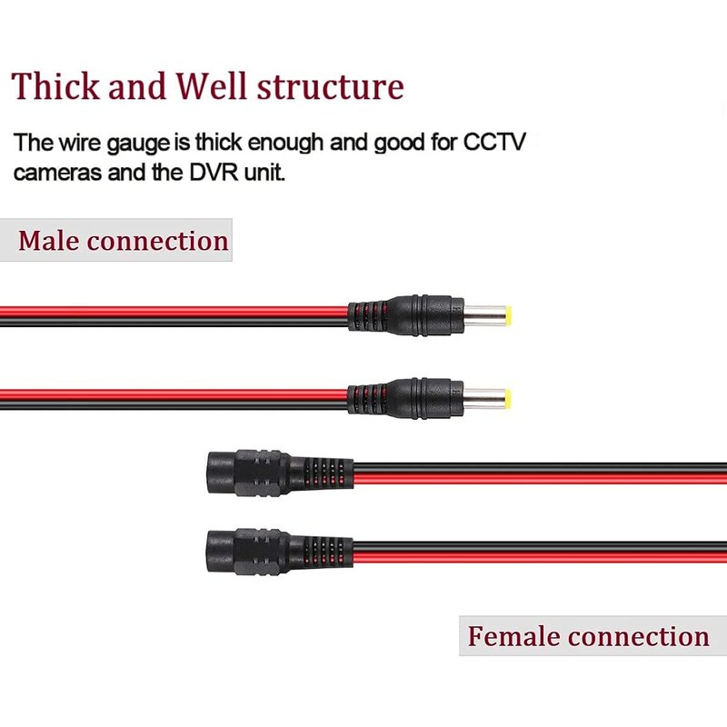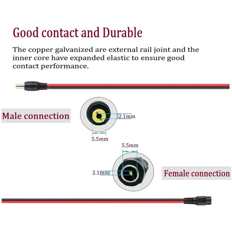 - 12 Volt Round Jacks,10pcs Male DC Power Pigtail Cables Add 10pcs Female DC Power Pigtail Cables.Cables Made From 100% Pure Copper Strands,