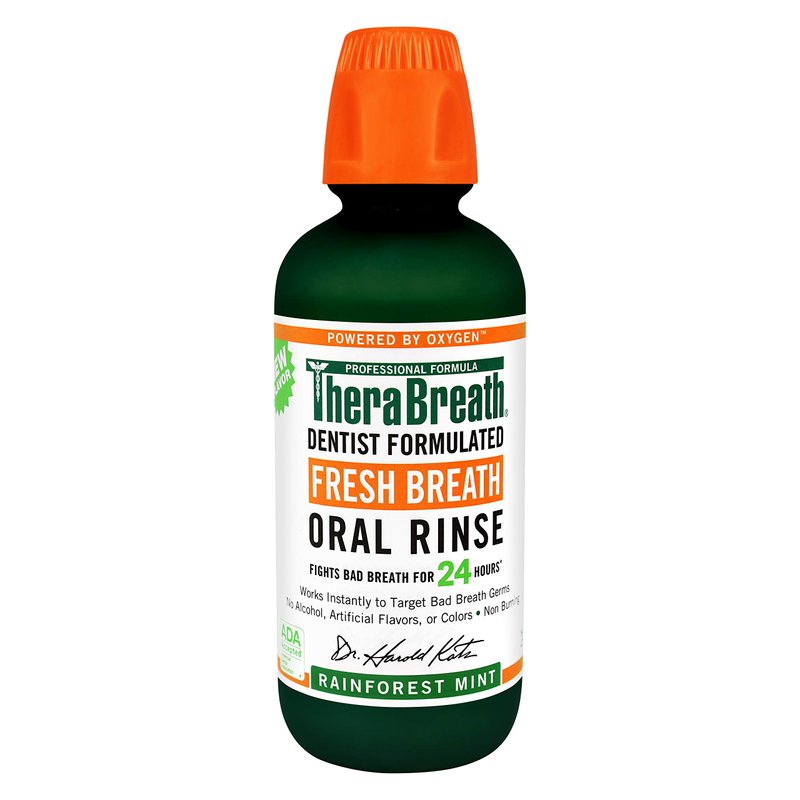 TheraBreath Fresh Breath Oral Rinse, Rainforest Mint, 16 Ounce Bottle