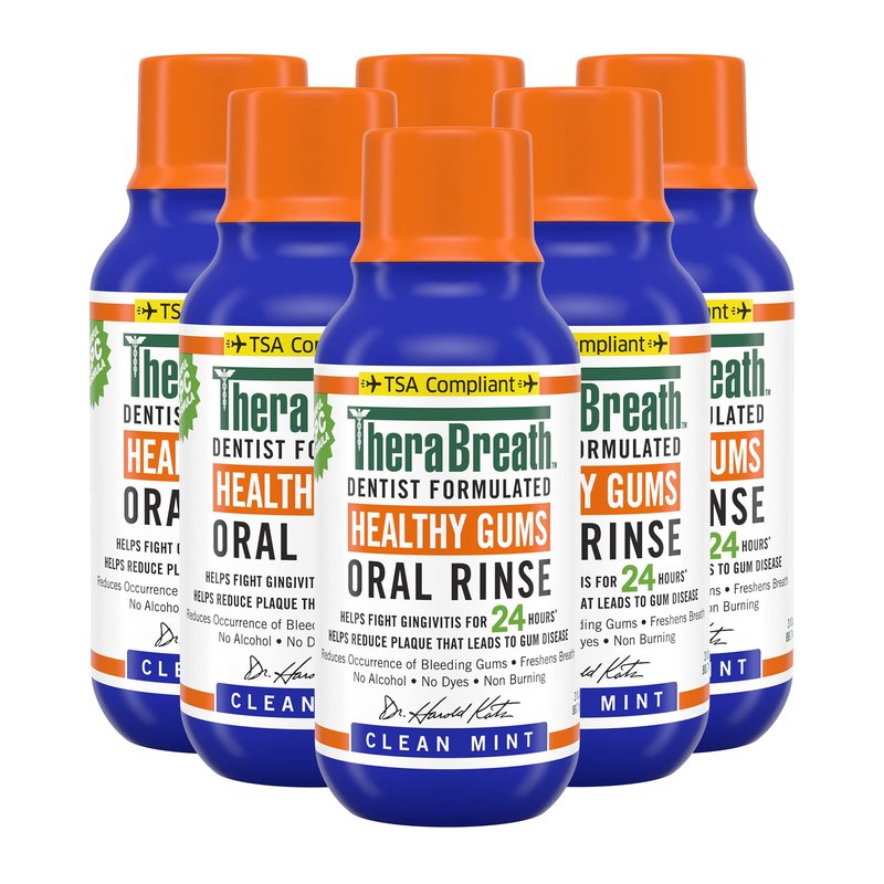 TheraBreath Healthy Gums Periodontist Formulated 24-Hour Oral Rinse, Clean Mint, 3 Ounce (Pack of 6)