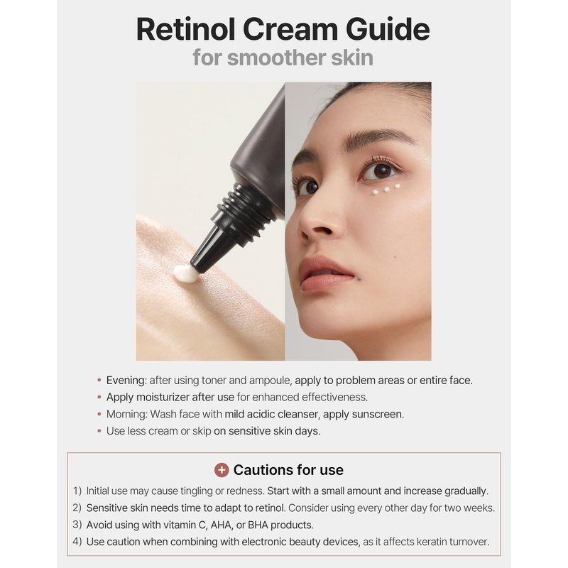 - EFFECTIVE APPLICATION TECHNIQUES: Ideal for evening use after toner and ampoule, apply Theralogic Retinol Cream gently over the skin or targeted areas. For those with sensitive skin, start with small amounts and avoid combining with vitamin C/AHA/BHA products to minimize irritation. Follow with a moisturizer for optimal results.