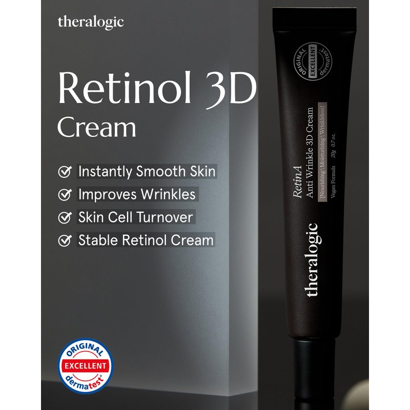 theralogic Retinol 3D Cream - Korean Retinol Vitamin A Face Moisturizer - Lifting, Skin Renewal and Wrinkle Improvement Night Treatment with Peptides - Dermatologically Tested, Vegan Formula, 0.7 oz.