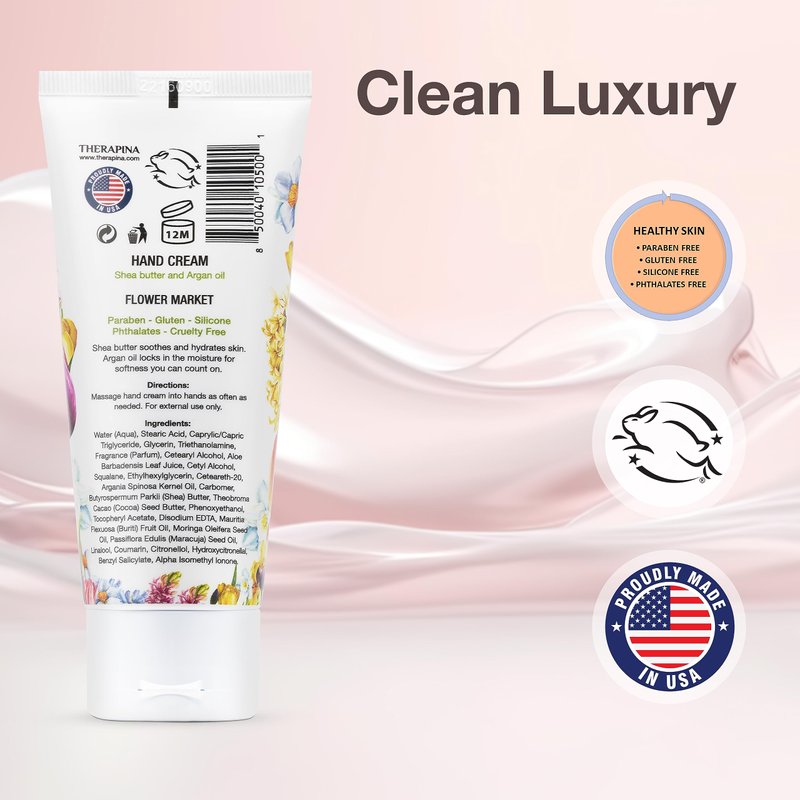 THERAPINA Aromatherapy Hand Cream for Dry Skin – Shea Butter Hand Cream for Women and Men with an Awakening, Long-Lasting Flower Market Scent – Vegan Hand Cream Lotion for Dry Skin, 3 Oz.