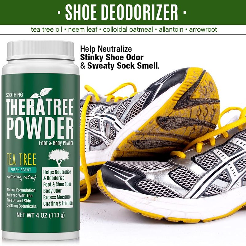 TheraTree Foot, Body and Shoe Powder with Tea Tree for Odor and Moisture Control with Organic and Natural Ingredients - Fresh Scent 4 oz