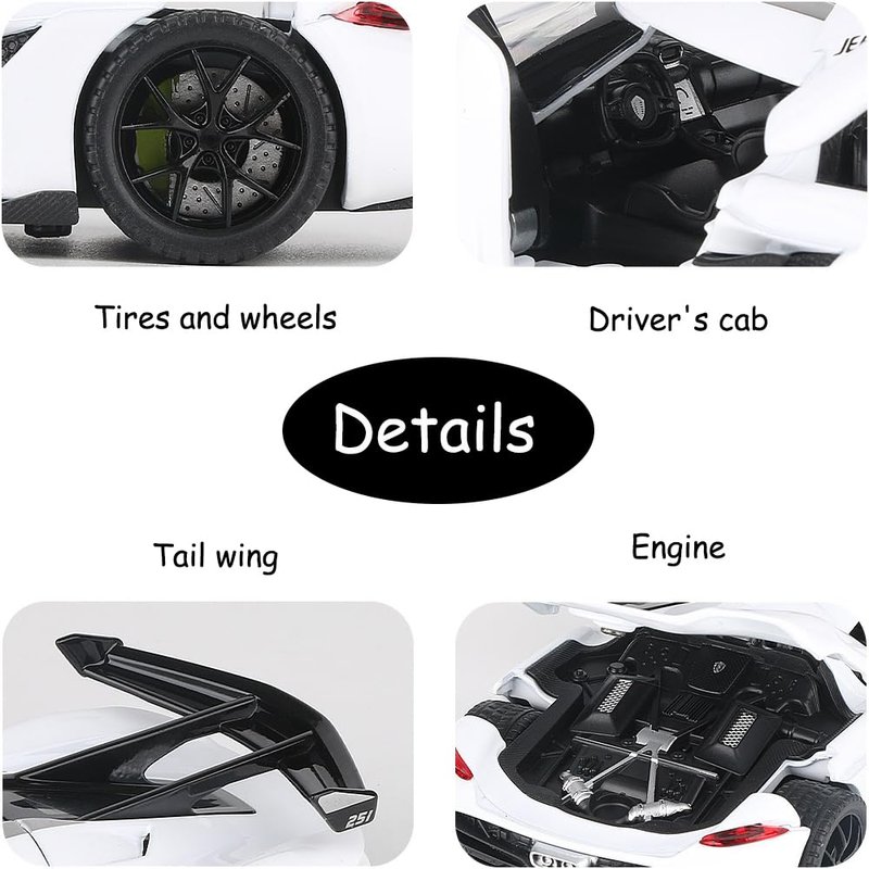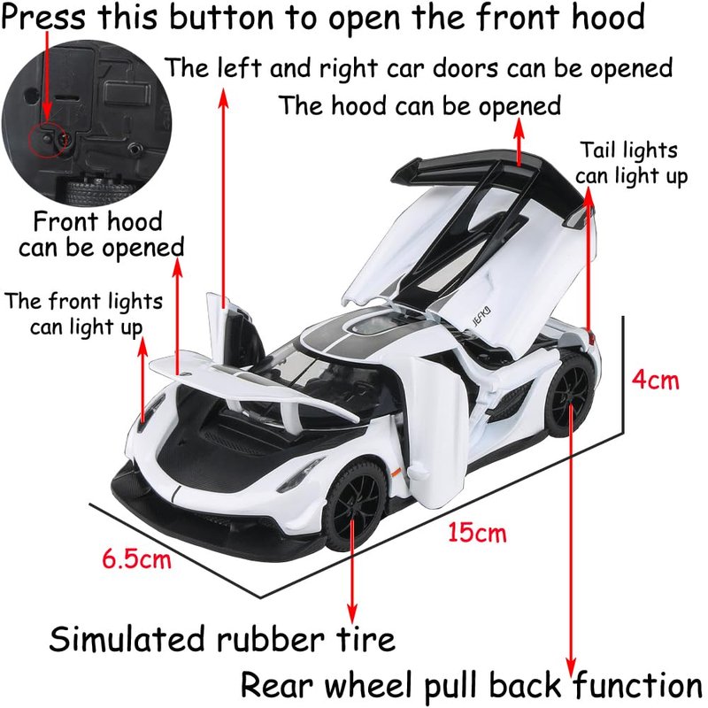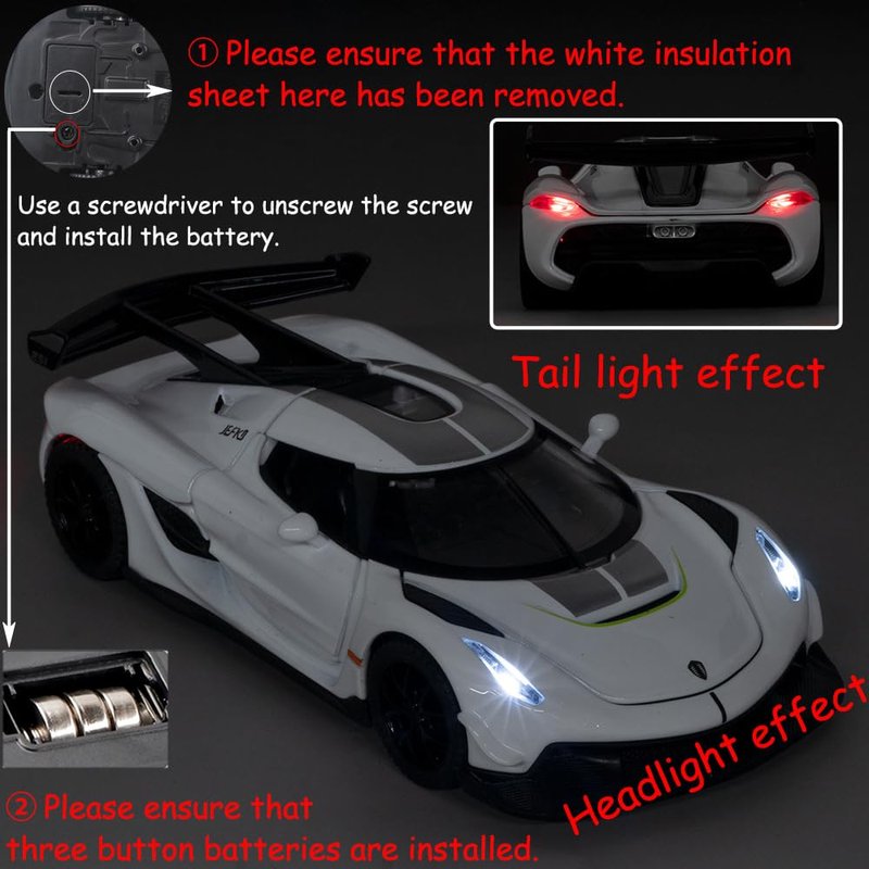 Therina Toy Cars Model Koenigsegg Jesko White Alloy Collectibles Die-cast Vehicles with Sound and Light