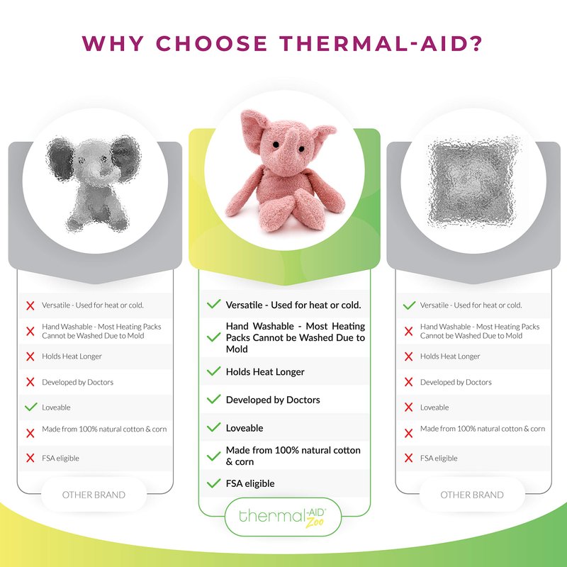 Thermal-Aid Zoo Microwavable Stuffed Animal - Plush Toy and Hot Cold Pack - Tiny The Elephant