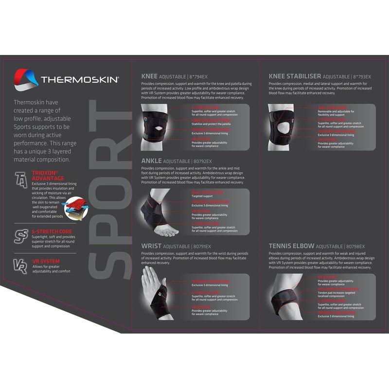 - Thermoskin combines compression, support and naturally generated body heat for therapy and pain relief