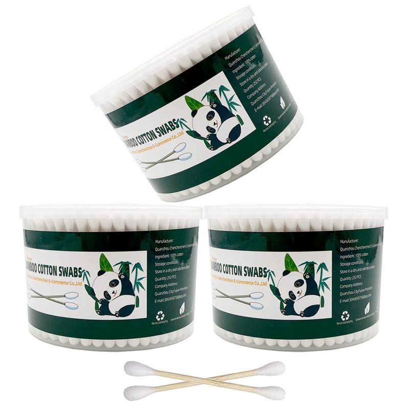 - Three boxes in total, 252 xl double-tip round bamboo swabs per box,100% biodegradable and organic, 100% cruelty-free and chlorine-free.