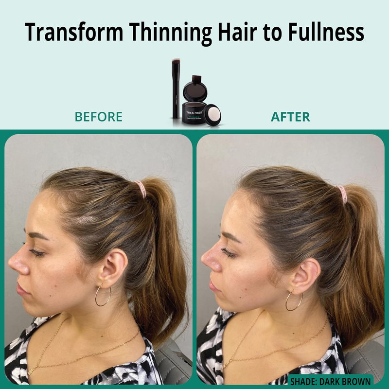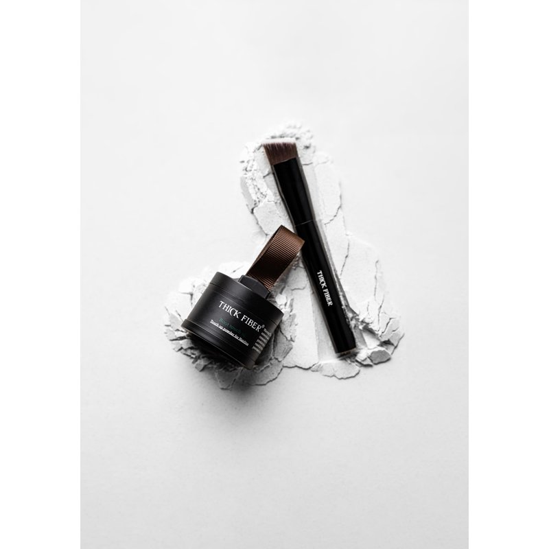 THICK FIBER Root Touch- Up powder to conceal thin Hairline. Effortlessly address thinning hair and gray roots with our expertly crafted formula. Seamlessly cover problem areas, from hairline to roots, THICK FIBER comes with a brush for easy, quick application, making bad hair days a thing of the past. Whether it's your hairline or roots, THICK FIBER Root Touch up coveres, flawlessly concealing and revealing a more vibrant look. No more worrying about those sneaky grays or sparse spots – just a natural, radiant finish. Transform your routine with this easy-to-use root touch-up powder, designed to provide instant coverage and a fuller, more vibrant hairline