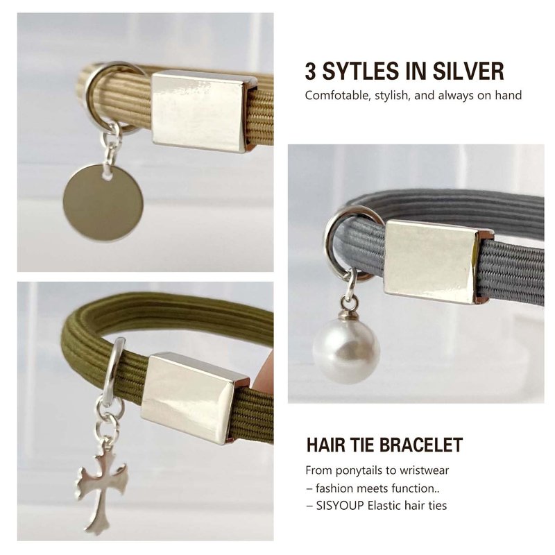 - HAIR TIES THAT LOOK LIKE BRACELETS: Sisyoup elastic hair ties can be worn as both hair accessories and trendy bracelets. The metal charms design adds an elegant flair to your wrist. Whether you need a reliable hair tie or want to rock a trendy bracelet, our fancy Hair Tie Bracelet set has everything you need. Be creative, be chic
