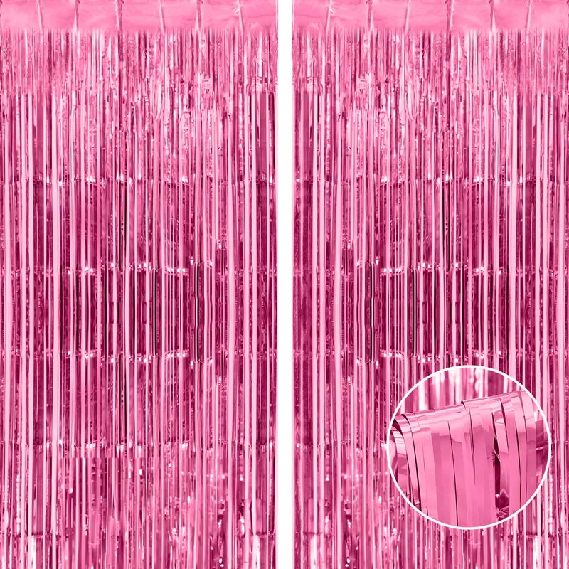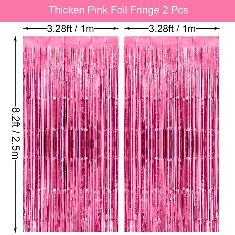 Thicken Pink Foil Fringe Curtains Decorations 3.2x8.2ft - 2 Pack, Photo Backdrop for Birthday Bachelorette Bridal Shower Baby Shower Graduation Party, Party Streams Decor