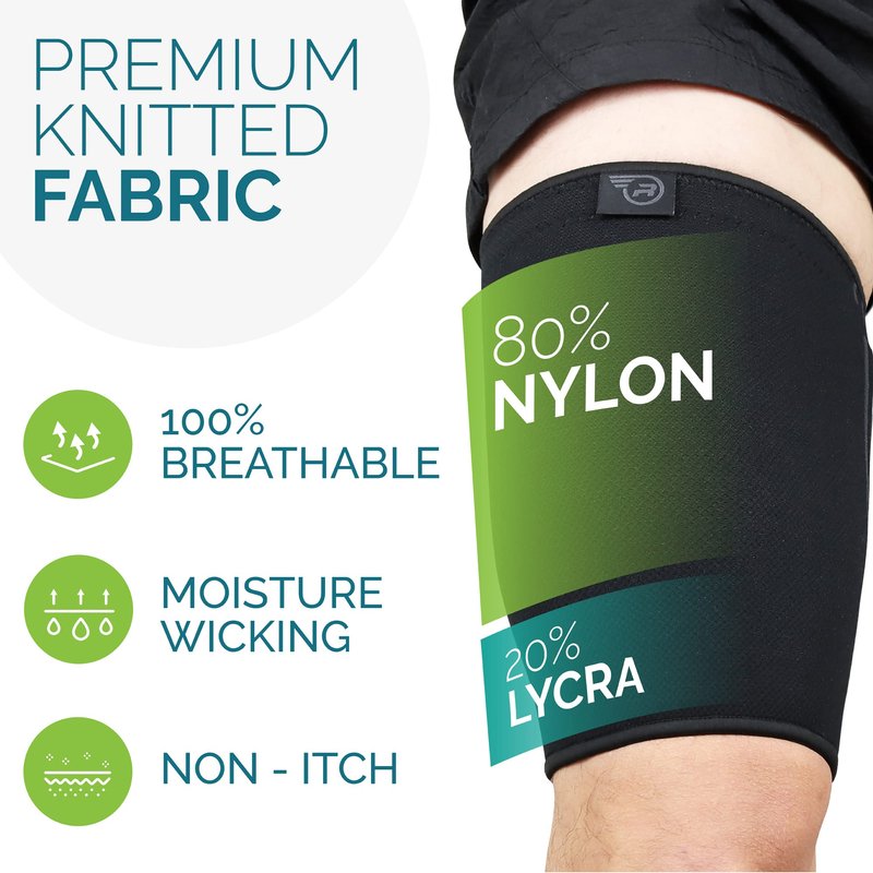 - High Quality, Breathable & Durable: Our thigh brace is made from 80% nylon & 20% lycra with anti-slip technology and breathable fabric for maximum comfort while preventing odor buildup. The sleeves are washable & provide long-lasting compression