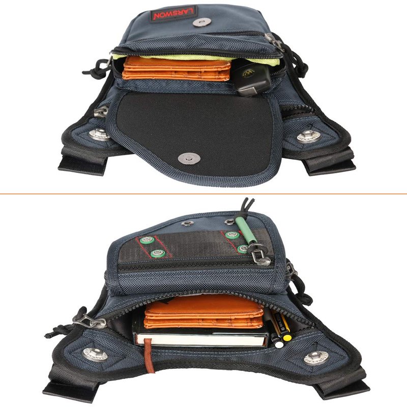 - Multiple Use Functions. Comes with thigh strap, fix bag safely around the thigh easily keep items stable in the bag. Very good for cycling, motorcycling, hiking, trekking.