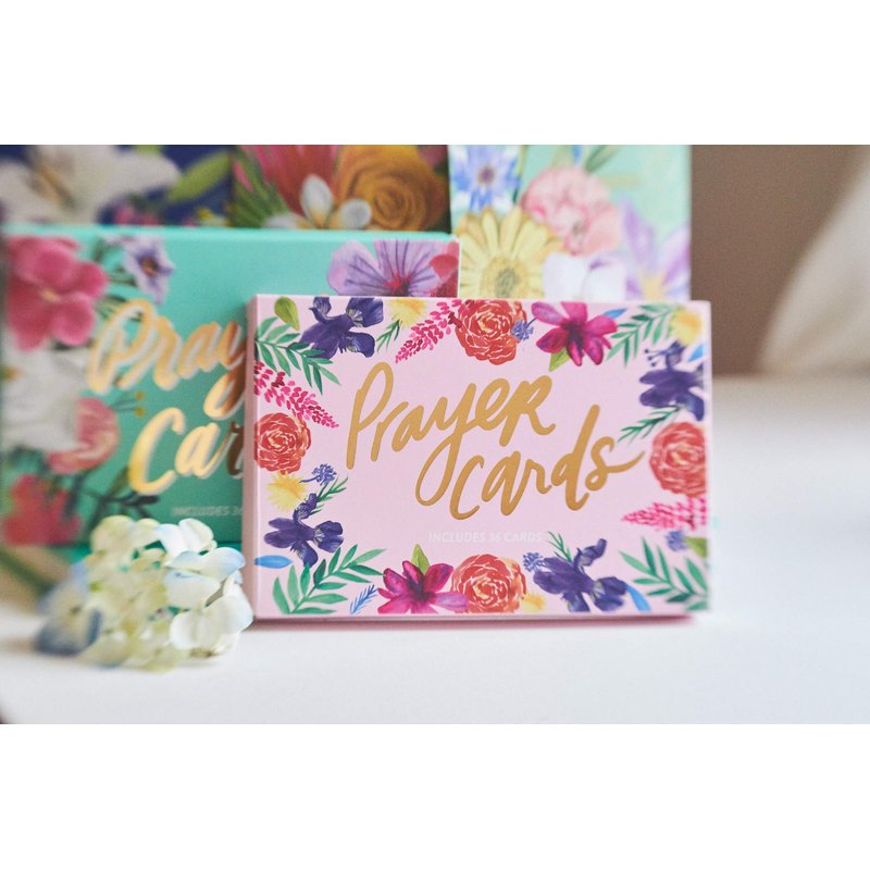 - Gold embossed floral gift box includes 36 prayer and Scripture cards with original designs by Thimblepress.