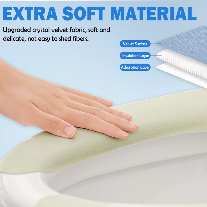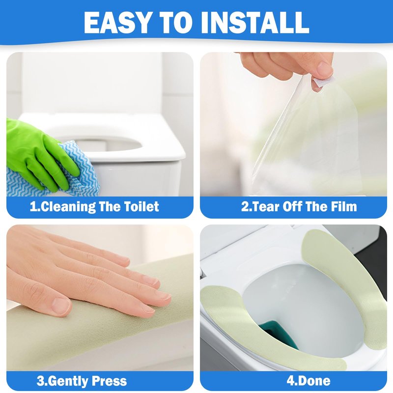 - Strong & Residue-Free Adhesion: Featuring advanced electrostatic adsorption and TPR adhesive technology, this toilet seat cover adheres securely to smooth toilet seats without leaving any sticky residue. Even after frequent use, it maintains reliable adhesion and won't damage surfaces.