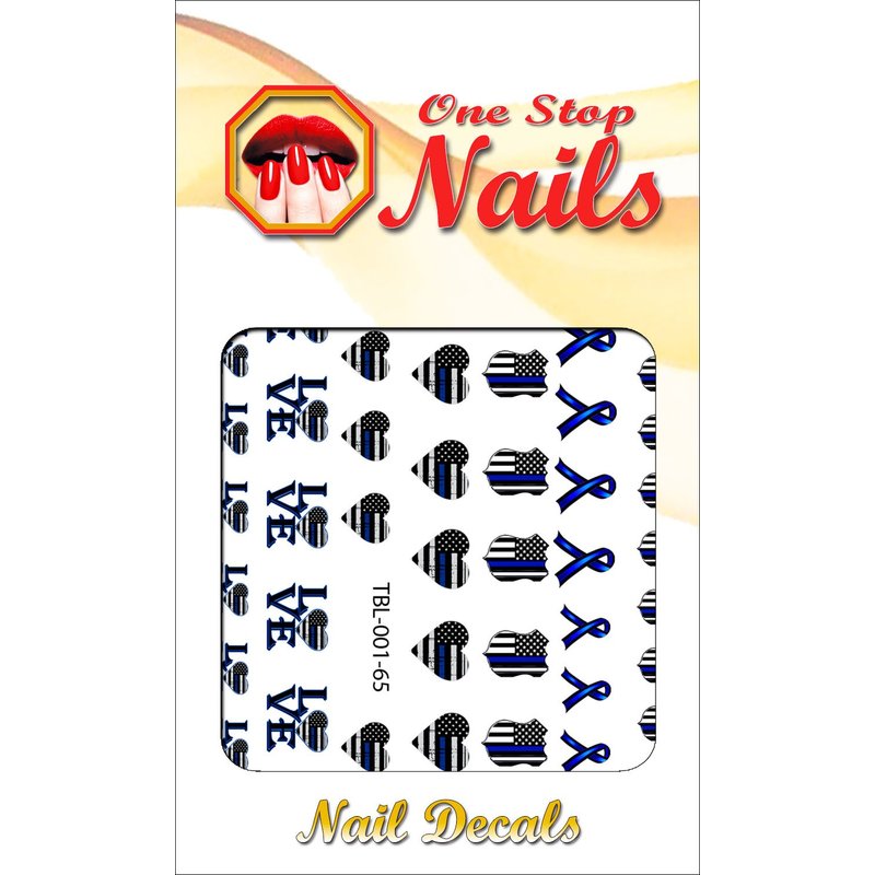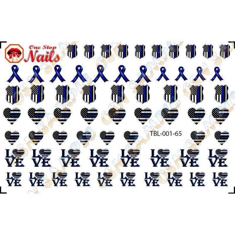Thin Blue Line (Ver.1) Clear waterslide Nail Art Decals (Tattoos) for The U.S. Police Supporters by DimOxy Designs.