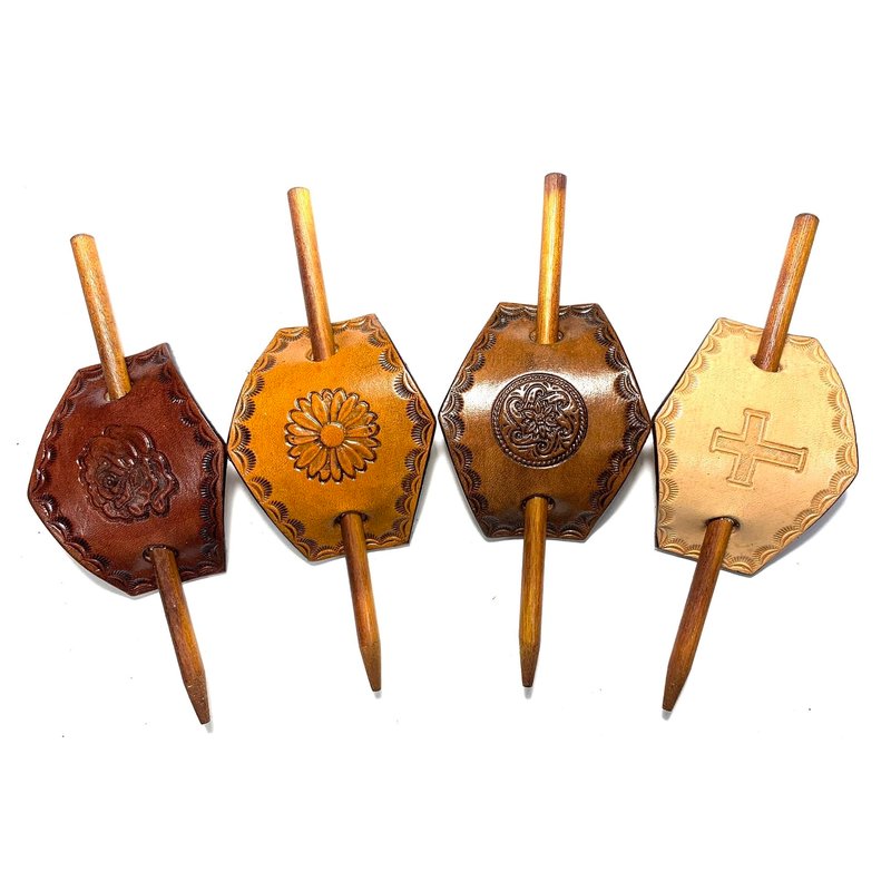 THIN HAIR LEATHER PONYTAIL BARRETTE, PONYTAIL BARRETTE FOR THIN HAIR, HAIR CLIP, SLIDE, WRAP, PONYTAIL HOLDERS, HAIR TIE, HANDMADE, HANDCRAFTED, HAND TOOLED, HOLDER, HAIR ACCESSORIES, BT 2402