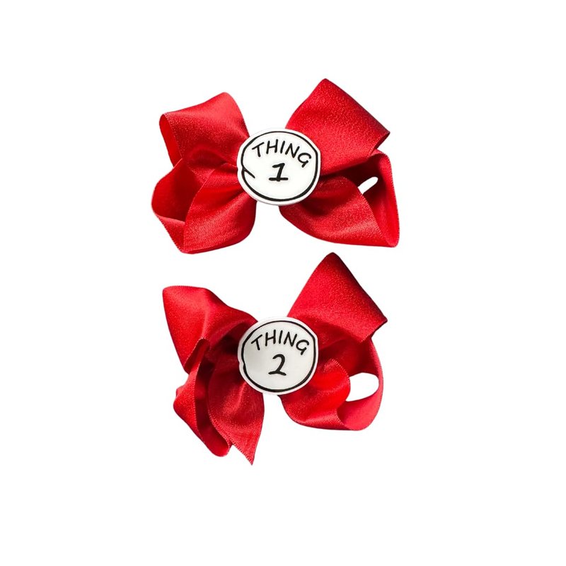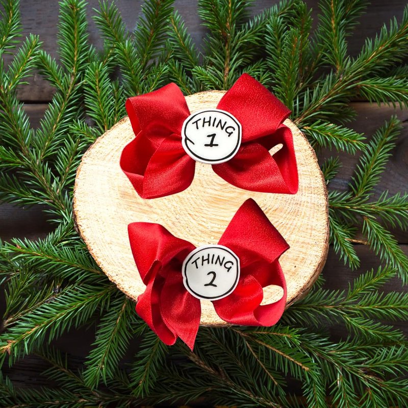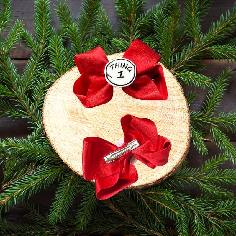 Thing 1 and Thing 2 Inspired Hair Christmas Holiday Shimmer Bow Set by Inspired Bows
