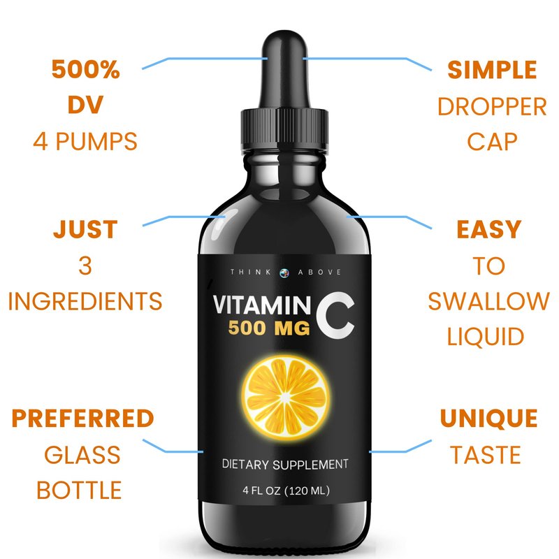 Think Above Liquid Vitamin C - High Dose - Vitamin C Drops - for Adults and Kids - 500 mg - Liquid VIT C - Non GMO - Vitamin C Liquid Supplement (4 fl oz 120 ml)