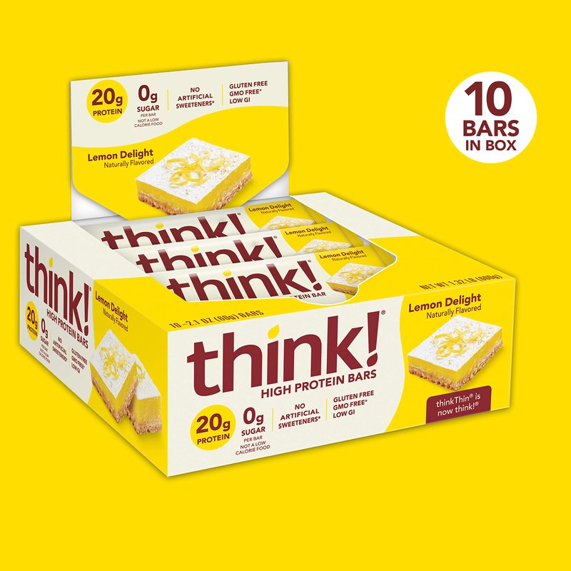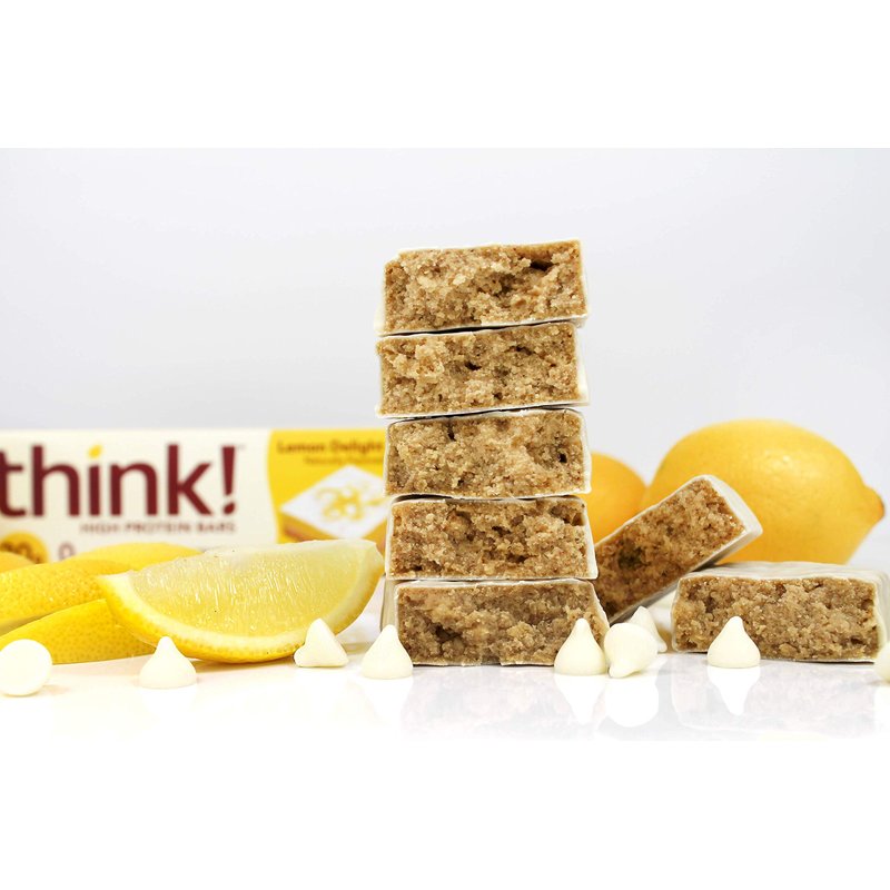 think! Protein Bars, High Protein Snacks, Gluten Free, Sugar Free Energy Bar with Whey Protein Isolate, Lemon Delight, Nutrition Bars Without Artificial Sweeteners, 2.1 Oz (10 Count)