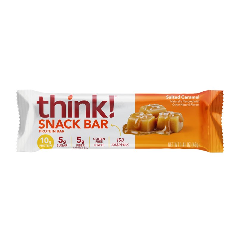 think! Protein Bars with Chicory Root for Fiber, Digestive Support, Gluten Free with Whey Protein Isolate, Salted Caramel, Snack Bars Without Artificial Sweeteners, 1.4 Oz (10 Count)