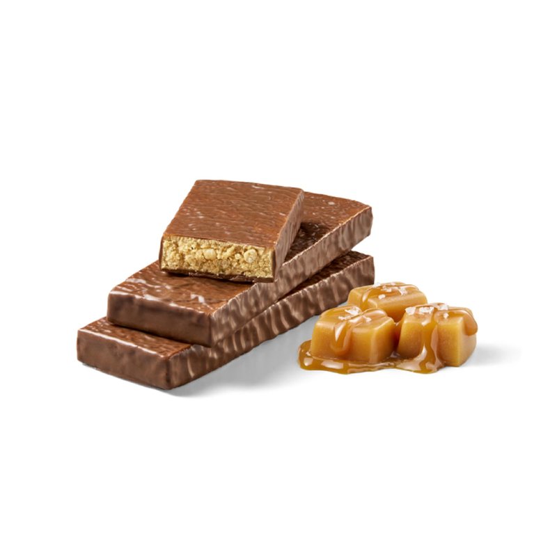 - Every bite of our Salted Caramel bar is filled with the smooth flavor of caramel with a hint of salt, this bar is a delicious way to keep you going through your day at only 150 calories.